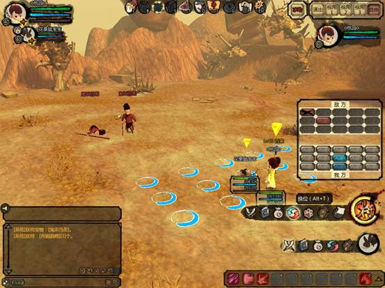 玩家角色在战斗中可以非常自由的更换自己的位置用来实现一些战术性的目标:如躲到高大的战士后面寻求庇护,又或者是移动到边缘地带去躲避范围技能的伤害等等。