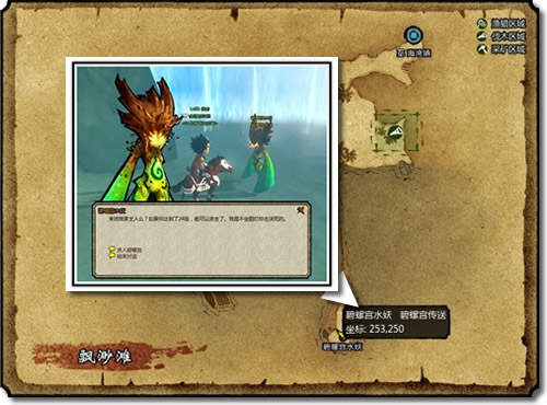 副本进入地点:组队至飘渺滩找碧螺宫水妖,传送至碧螺宫副本。