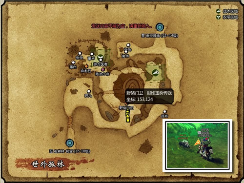 副本进入地点:世外孤林找NPC-野猪门卫,传送至封印宝树副本讨伐BOSS牙山君。