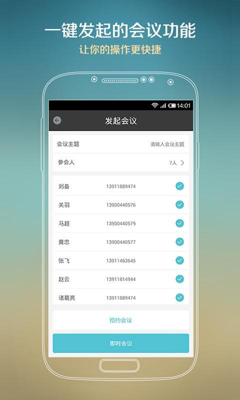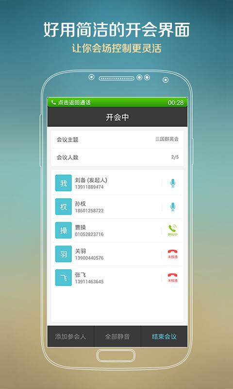 ★便捷——1人安装,就可发起多方通话(电话会议);★人性——1键发起即时会议、预约会议,提供历史会议管理功能;