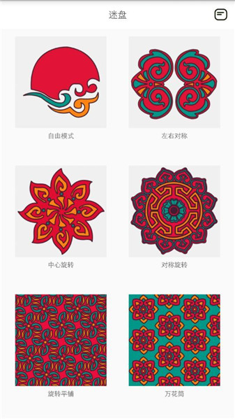 迷盘不是一款普通的绘画app,不论是绘画高手还是零基础的爱好者,您都会惊讶于您的产物。程序中提供了7种不同的绘画形式,有自由模式、左右对称对称、中心对称、对称旋转和平铺的方式,将万花筒的原理呈现于您的每一个线条,形成完全不一样的图案,每一笔落下都会给您带来不同的惊喜。完美的体验将颠覆您对所有绘画工具的看法,画面的未知与流畅感使您舍不得离开迷盘。移动的终端使您更加方便,随时随地尽情创作,畅享迷盘带给您的乐趣。使用迷盘进行无意识创作的成品,不亚于市面上的工艺品,甚至可以将其定制成为生活用品和摆件,为家中增添更多的生活情趣。