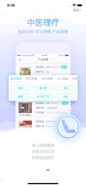以经络理疗椅检测、健康一体机检查为基础,围绕用户健康数据的采集与分析,向用户提供在线咨询、健康计划配置、经络理疗建议、保健食品推荐等线上健康服务和保健信息,打造一站式健康管理服务平台。