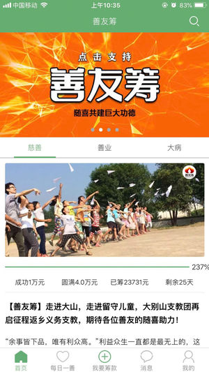 善友筹是一个同时具备实物和精神回报的众筹平台。经过实地审核的爱心项目;