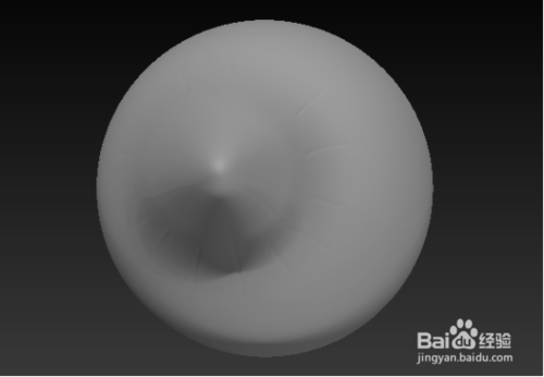 在视图区域绘制球体并转换为可编辑多边形模式,选择刚刚制作的笔刷,在模型上单击并拖拽。