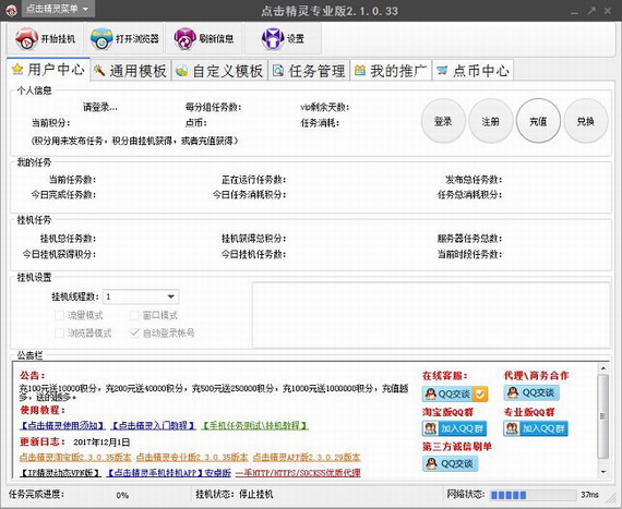 免费客户端在挂机排名时,可能由于临时有事,不能持续挂机,导致关键词排名下降,所以我们提供客户端代挂机服务,保证客户端按时足量完成当日点击任务。【使用教程】