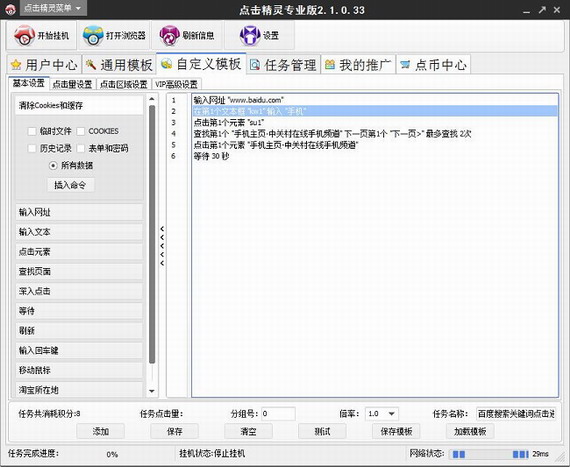 3、当然若用户不想使用程序提供的模板,则可点击“自定义模板”,自行设定要刷取点击率的网址或则其他网站。