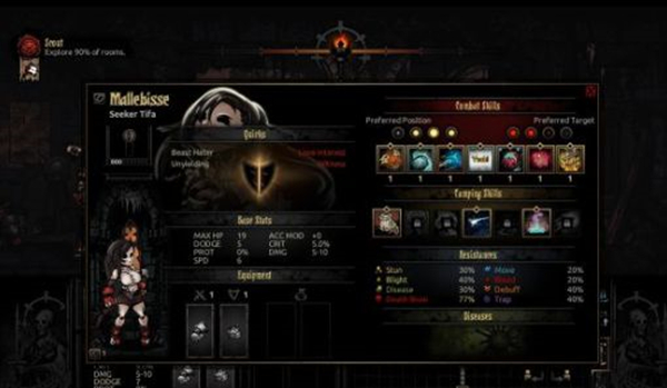 《暗黑地牢 Darkest Dungeon》是一款Roguelike风格的永久死亡玩法的回合制RPG游戏。游戏中,一位贵族领主在挖地时不幸挖出一个不断吐出怪物的传送门,引发了一连串惨剧,而作为领主的远亲,恢复家族领土与名誉的担子就这么落到玩家身上,为此,必须招募各色英雄,组成冒险小队,对潜藏着恐怖怪兽的地下城进行扫荡。