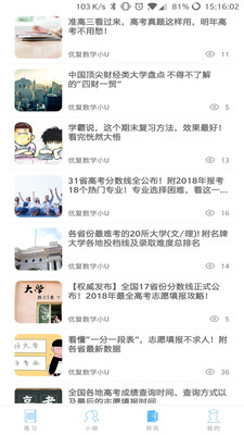 优复数学是优复教育旗下的一款一站式高中数学学习在线教育软件。利用人工智能精细化管理你的学习过程,精确的判断每一个知识点的掌握情况,记录你的学习点滴,不漏过任意一个细节。高效的找到最适合你的学习方式。拥有高考数学题库、推荐合适的练习册,在线学习小组等实用功能。