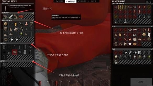3、左边第一个是物品介绍,然后第一栏是制作此物品需要什么东西,第二栏是此物品制作好后有什么用途,往后都是你背包里面是否有这些物品,很无脑的。