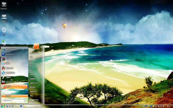 海岸星辰桌面主题站在海岸坡上,被远处的美景陶醉~漫天星辰从远处逐渐散开,就像神话般神奇!~