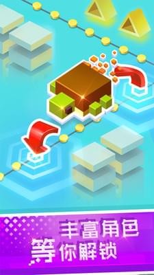 《滚动白块》是一款全新的休闲益智游戏,玩家可以控制着各种各样的角色,跳过所有障碍物,收集金币,不断刷新最好成绩。游戏中,随着积分的增加,障碍物会变的更多,还会出现一些有趣的建筑。传送门会将角色克隆并分散到多条道路上,这是反应力和手速的考验,玩家需要保证所有角色都不会撞毁。