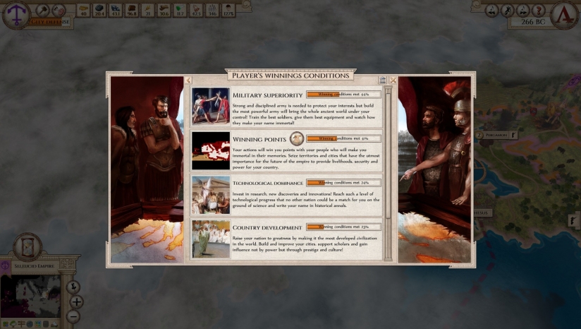 可以管理你的帝国的所有方面:战争、贸易、内部政治、外交、文化发展。20个派别,从野蛮人部落到先进的帝国,可以通过极其详细的外交系统来相互建交合作