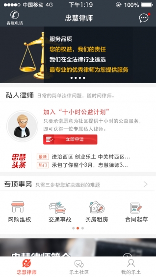 乐土是一个由专业律师发起设立“互联网+法律”应用,用户可快速获取专业律师的法律支持。乐土鼓励用户用专业帮助他人,乐土用户可用公益换取法律服务,并构建社区成员间信任,形成高效率交流合作的互联网法治社区。1、什么是互联网法治社区? 乐土具备互联网和法律双重特点,法律为社区成员彼此的交流合作提供制度保障,可以推动遵守规则的“靠谱人”之间高效合作。
