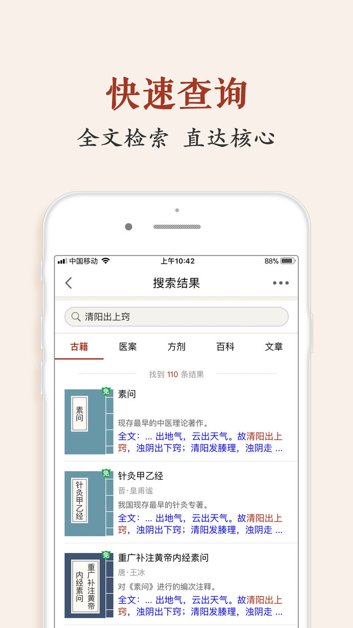 --简便实用:支持按方名、功效、组成、出处查询,方便好用。