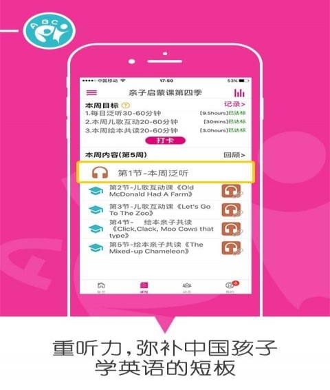 乐玩英语app现有的核心课程是亲子启蒙课,为期一年。课程内容按周展示,详细指导了家长在每一阶段要做什么、怎么进行亲子阅读、怎么进行儿歌互动等,每一课都有导读、指导视频、翻译、生词等。我们不仅仅是一个课程,更是英语启蒙的好工具,集播放器、绘本阅读于一体,是您最完备的英语启蒙神器。