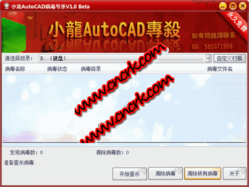 AutoCAD病毒专杀本程序永久免费!cad病毒有别于传统病毒,致使目前很多杀毒软件对其无能为力,此工具可以帮您将cad恢复到正常状态!