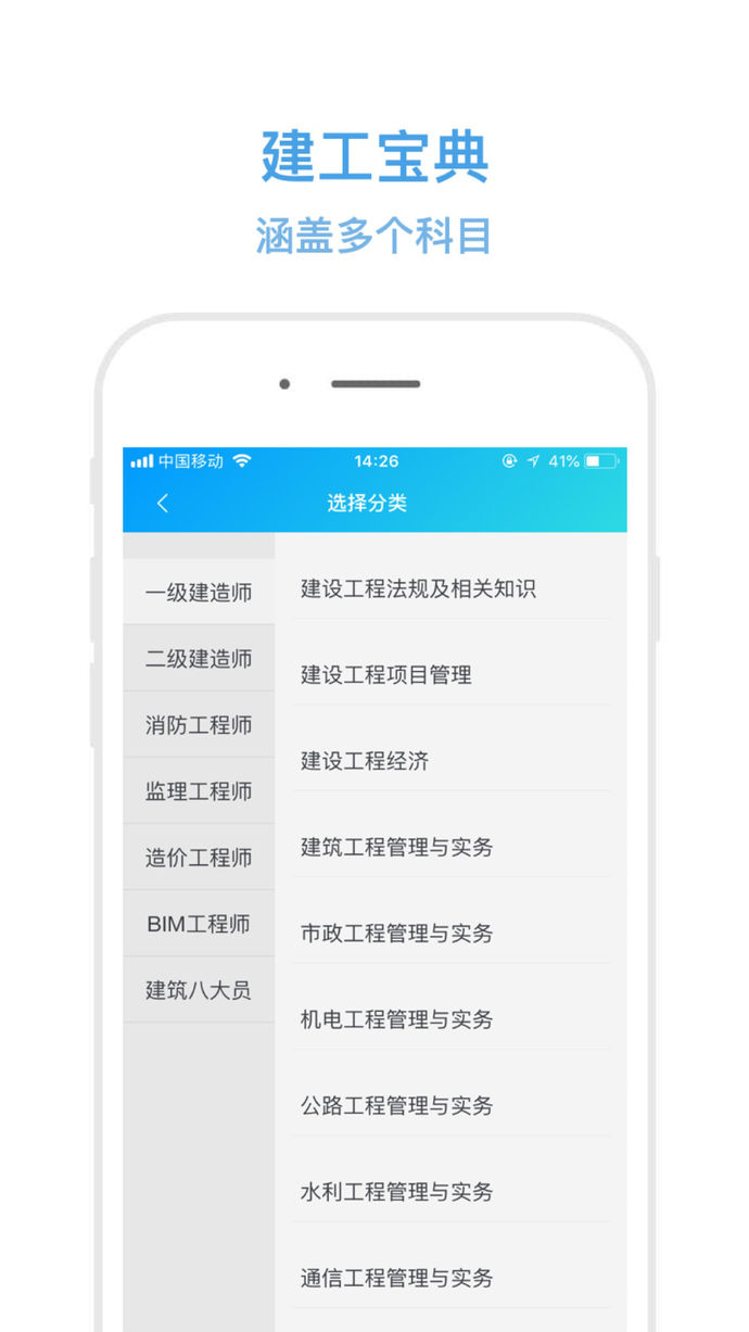 【建工宝典内容】建工宝典主要覆盖考试为一级建造师,二级建造师,消防工程师,造价工程师,监理工程师,建筑八大员等技工考试取证。