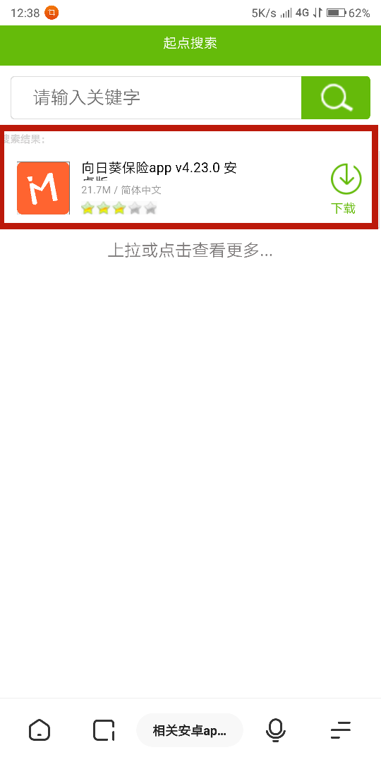2.进入起点后搜索向日葵保险,选择第一个进入下载页面