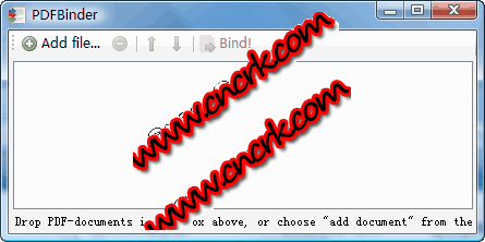 直接按“+”或者拖放PDF进入框内,然后用菜单上的上下箭头调整顺序,单击“Bind!”即可开始合并。