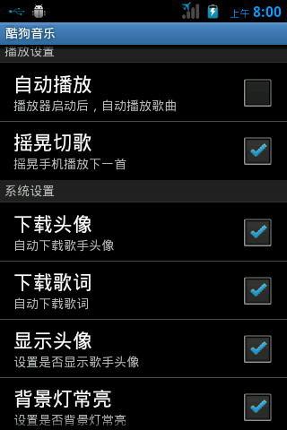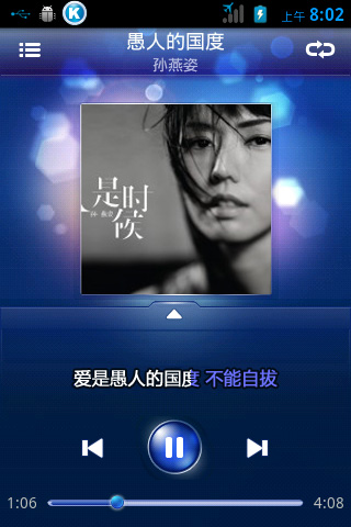 支持后台播放,迷你动感歌词桌面显示,并且可diy设置微型界面。微型模式下还可同时操作多任务。此外手机酷狗还有时间显示和睡眠模式等贴心功能。