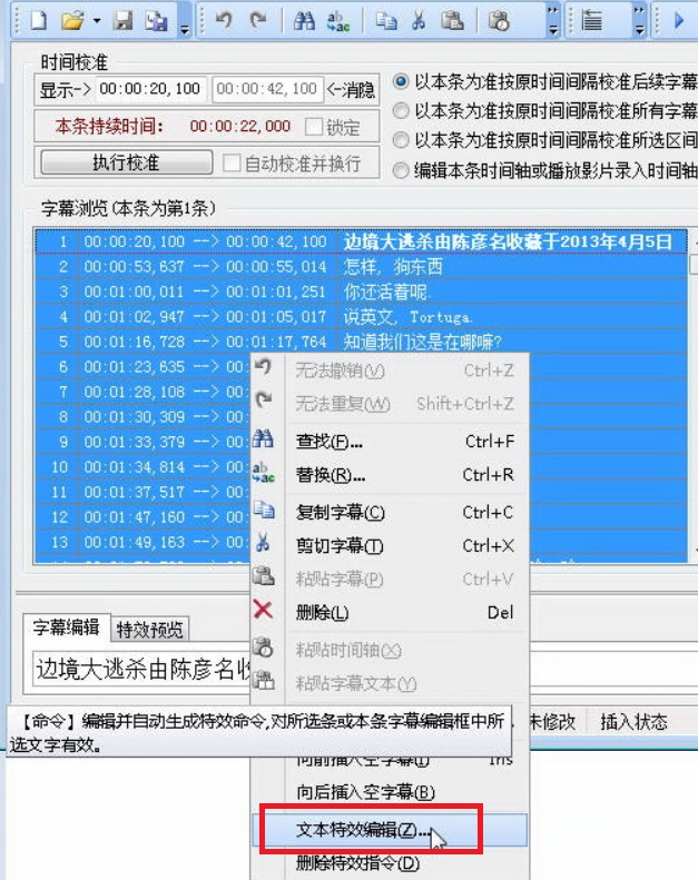 一、srtedit字幕编辑器如何进行文本特效编辑?1、打开一个字母,在选区单击右键打开文本特效编辑