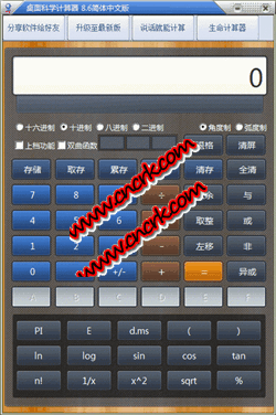 桌面科学计算器是一款界面特别简洁,功能特别强大的桌面科学计算器软件,支持十六进制、十进制、八进制、二进制、函数计算等等的所有计算功能、结果可保存,非常好用。