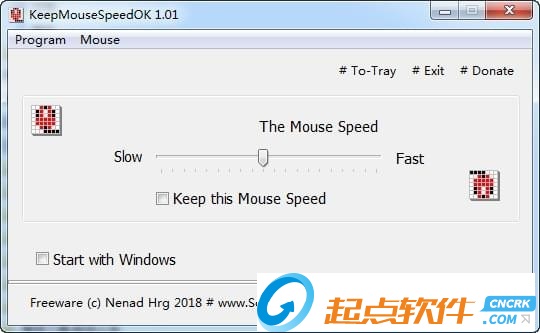 1、解压后,打开KeepMouseSpeedOK,通过拖动滚动条来设置鼠标指针速度即可