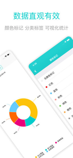- 颜色标记、分类标签,可视化统计,数据直观有效。
