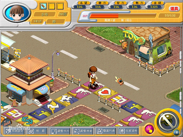 游戏风格整个游戏的画面清新亮丽,各种建筑物错落有致,中间的格子路填充着有趣的游戏格,惊险的怪兽格,浪漫的爱情格......