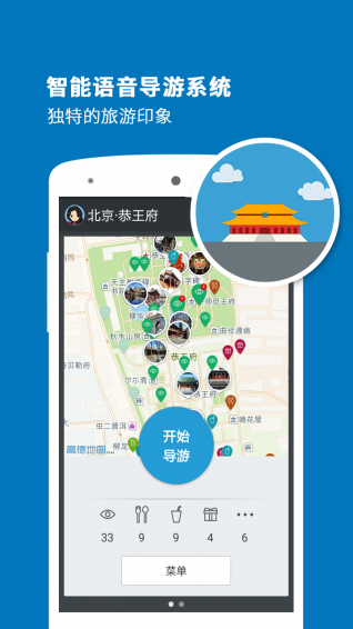 听游天下——恭王府导游app:专业的智能语音导游系统,专为喜欢自由行的旅行爱好者而设计。携手科大讯飞,带给您独特的恭王府印象。恭王府,历经了清王朝由鼎盛而至衰亡的历史进程,承载了极其丰富的历史文化信息,有着“一座恭王府,半部清代史”的说法。听游恭王府,以精准,专业的真人语音自动播报导游,带您领略满清第一“能臣”和珅的精美府邸。