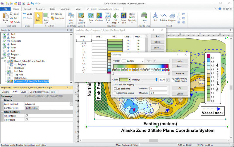 将轮廓线编辑至最精细的细节。Surfer的网格编辑器让你通过交互编辑底层网格文件来快速调整轮廓线。刷,扭曲,平滑,向下或向上推,并删除网格节点,并立即看到基于网格的地图的变化。