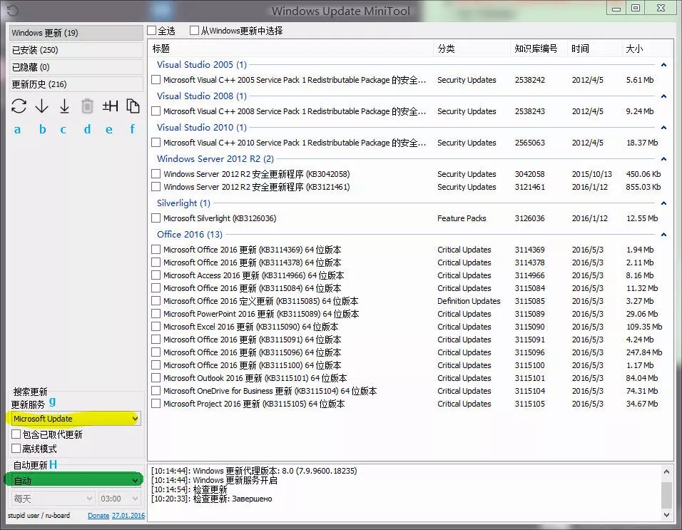 Windows Update MiniTool,Windows 更新迷你小工具,是我们用来升级系统的组件,通过它来更新我们的系统,能够扩展系统的功能,让系统支持更多的软、硬件,解决各种兼容性问题,让系统更安全、更稳定。Windows Update MiniTool是一款由俄罗斯大牛 stupid user 精心设计开发的免费的可替代微软 Windows Update 更新组件的补丁更新与管理工具,该工具允许使用者全权控制系统补丁的搜索、安装以及计划任务、禁用 Windows 自动更新等功能特性,是喜好折腾系统重要更新与优化部署人员必备神器之一、