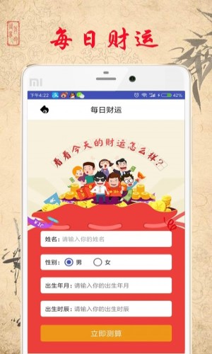 特透宝典APP是一款六合八字在线算命应用!应用内功能齐全,包括命运详解、询问大师、八字合婚、八字事业等等。六合八字排盘是中国人民传统文化的结晶,经历几千年的岁月而沉淀下来的民族精华,具有独特的神奇的未来预测功能,而且具有丰富的科学理论,是一个经过科学鉴证的解说命理工具。八字六合排盘提供算命,为您通晓未来,让你为接下来的未来做六合好充分的准备。