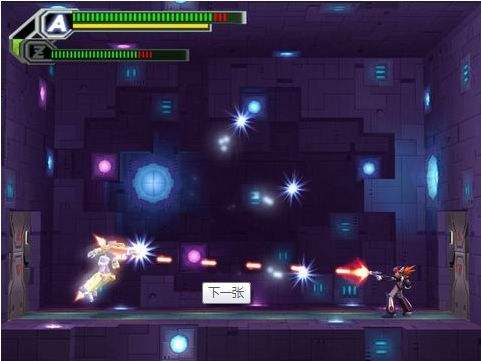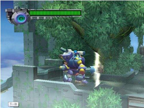 3、1的场景的下方可以发现有一位可以飞的机器人,让Axl复制它的功能(其实不用的可以,但是用了更方便)。此场景过后可以发现又有一处跟一开始一样是向下移动的卷轴。先别急着下去,往上跳吧,跳得没得跳了就用那个机器人的功能飞向右边,有个房间,里面有稀有金属。