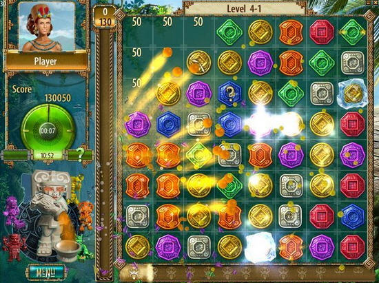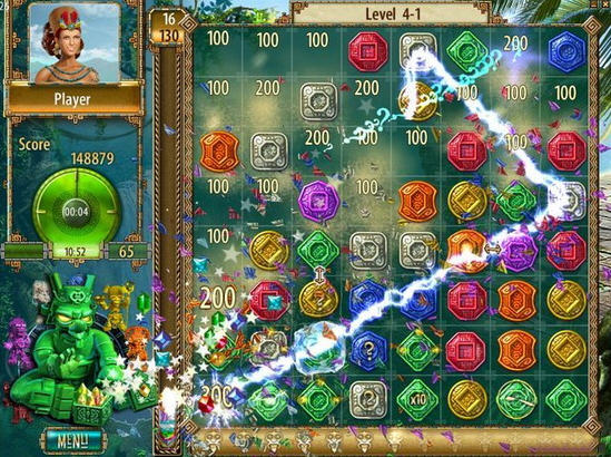 精品消除游戏《蒙特祖玛的宝藏》是由PopCap推出了第二代休闲消除类游戏,华丽而流畅的消除再次展现在我们的面前,游戏中增加了哪些新的元素呢?赶快进入游戏来体验吧。游戏的整体画面风格和一代比较接近,还是采用了古老的美洲文明为背景,华丽的动画效果和流畅的操作感表现突出,虽然是简单的消除但是让人百玩不厌。游戏画面会带给玩家细腻与华丽的质感,整体游戏在前景与背景的制作方面下了一番功夫,丰富的游戏场景会使你目不暇接,刻画有不同花纹的彩石非常精致,消除效果具有绚丽的光影特效,整体画面十分出色。
