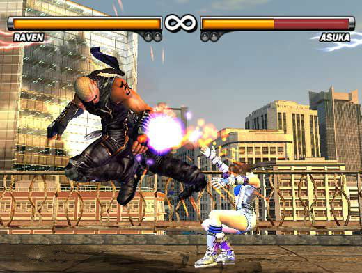 进入到游戏以后,玩家想必都会被精美的开场CG所深深震撼。而在NAMCO游戏常见读取时所提供的小游戏方面,PS2版收录了 NAMCO于1991年推出的3D宇宙空战射击游戏《Star Blade》,不单是内容进化了,连小游戏也从2D进化到3D的画面了。穿插在每个人物的故事模式中的过场CG也同样非常出色,配合与场景结合地丝丝入扣的背景音乐,代给了玩家极高的视觉和听觉感受。版本还替每位登场角色增添了更完整的故事剧情演出与结局动画影片,让玩家能更清楚的了解各角色的来龙去脉。内容基本上是以大型电玩版的片头动画为基础,但加入了更多的台词与分镜,长度也大幅增加,剧情演出更为详尽。故事叙述在前代的深山城堡最后决战中,三岛平八、三岛一八与风间仁、横跨祖孙三代的死斗,最后由风间仁获胜,面对生出黑色羽翼,恶魔力量完全发挥的仁,平八与一八原本已经有领死的觉悟,但仁在最后一刻受到去世母亲风间准的感召,恢复了本性,于是撇下祖父与父亲两人扬长而去。精疲力尽的平八与一八,突然又遭受来路不明的-杰克(Jack)机器人部队袭击,虽然两人都有超乎常人的武艺,但仍不敌源源不绝的杰克机器人。为了脱身,一八将平八推入杰克部队中,趁隙脱逃,平八于是消失在杰克自爆的火光之中。这一切都看在旁观的神秘忍者-雷文(Raven)的眼中,在顺手解决了一只偷袭的杰克机器人后,雷文消失于黑暗之中。【游戏角色】