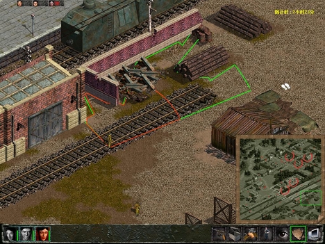 提示:古明伪装成为日军后要千万注意山本和龟田的活动,避免被其发现。在日军靠上的军营中有一队极其讨厌的巡逻队,玩家可以使用老赵在其必经之路——军营门口放置地雷将巡逻队全部炸飞。虽然老赵使用炸药包也可以炸毁日军兵营,但是笔者在此推荐玩家操纵古明穿上日军军服后将汽油桶放至指定地点,然后走开一定距离后开枪打爆汽油桶炸毁日军兵营。身穿日本军服的古明带领铁蛋爹走到火车旁边的指定地点后,将鼠标放在火车门上(鼠标会显示为手的形状),然后点击鼠标便可以将所选中的人物送入火车。由于本关具有时间限制,因此需要玩家尽快完成任务,不过只要作太多无谓的牺牲,时间还是会很充裕。