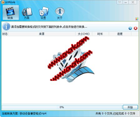 onmovie是一个完全免费的全能型视频格式转换软件。几乎支持所有流行的视频格式: 支持"rm","rmvb","vob",dat","vcd","svcd","mp4","3gp","avi"……之间的相互转换。支持多种操作方式: 使用系统右键菜单或桌面拖拽让您更方便快捷的进行视频格式转换。内置多种流行的转换解决方案:内置的转换解决方案轻松实现手机、mp4、ipad等移动设置的视频支持。支持转换方案的自定义配置:通过编辑转换方案,让您想怎么转就怎么转。绚彩换肤功能: 通过绚彩换肤功能实现界面七十二变,告别枯燥的操作界面。