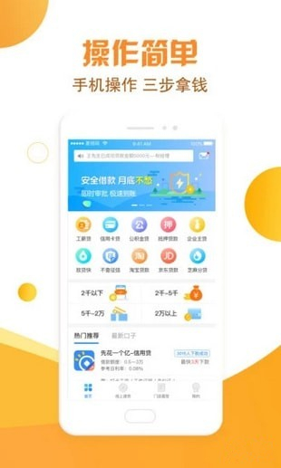 1.低门槛:无需抵押担保,安全方便;2.急速借钱:三分钟在线申请,资金一步到账;