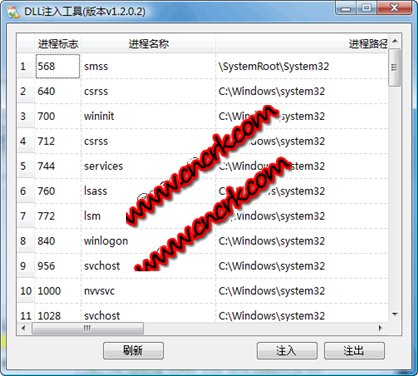 本程序可以向列出的进程中注入DLL.