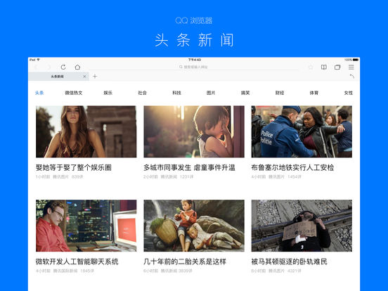 QQ浏览器HD为您提供更适合iPad浏览的WWW网页,速度快,性能稳定,站点资源丰富,并在继承Safari 已有操作习惯的基础上,提供了良好的交互体验及简单清晰的界面视觉,操作简单易用,窗口管理更方便,让您享受完美的iPad上网新体验!
