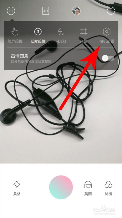 6、你还可以进入【相机设置】,选择自动保存拍摄好的图片还是手动保存,也可以选在是否要在照片上留下水印等: