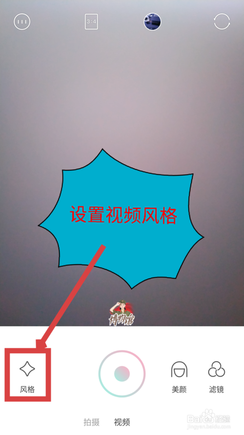 2、在拍摄视频前,点击风格可以设置拍摄的视频的整体风格效果。如图所示