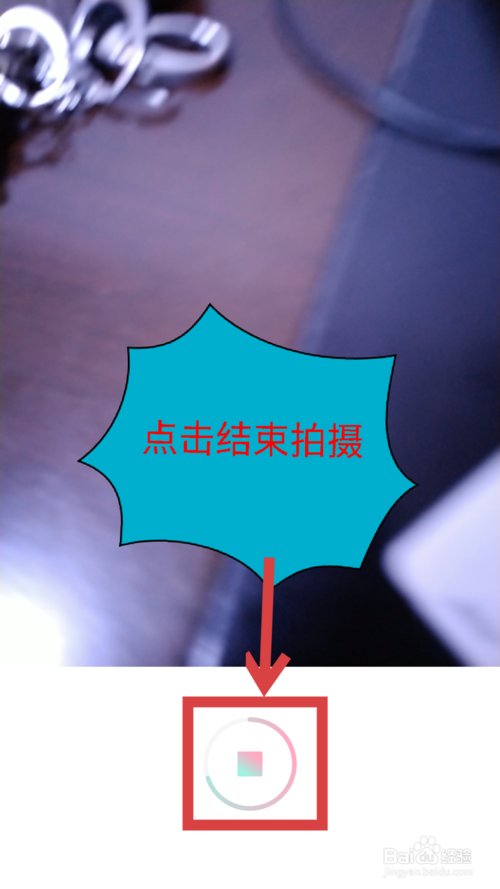 6、视频拍摄完成后,再点击一下拍摄按钮,结束拍摄。如图所示