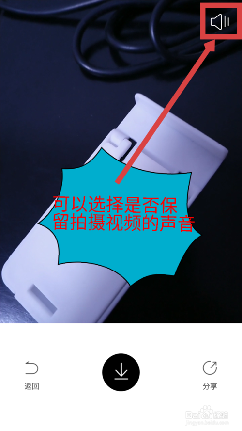 7、结束拍摄后,可以选择保留拍摄视频的声音或者不保留声音。如图所示