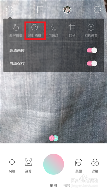 3、还可以设置触屏拍摄、延时拍摄、闪光灯等。