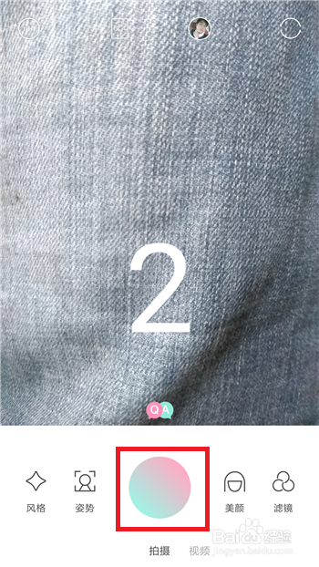 5、为了做验证,我们返回到轻颜相机主界面,点击下面的拍摄按钮拍摄一张照片,拍摄之后可以发现此照片非常“干净”,没有水印(logo)
