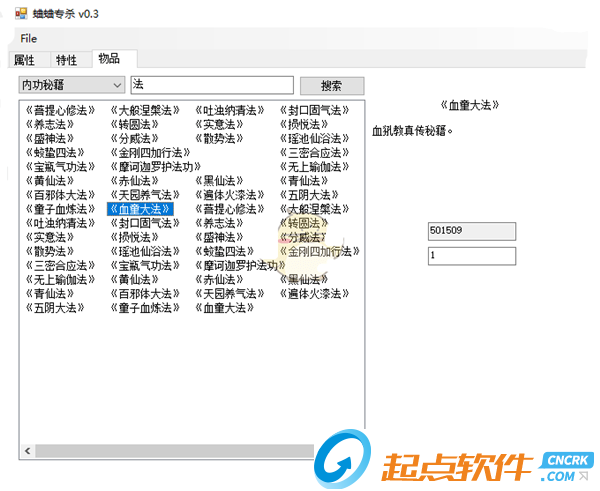 增加物品添加功能,因为分类名不完整,所以请用搜索功能,物品属性按游戏概率随机(不想放出来),物品数量自己看着办,不可叠加的记得改成1。