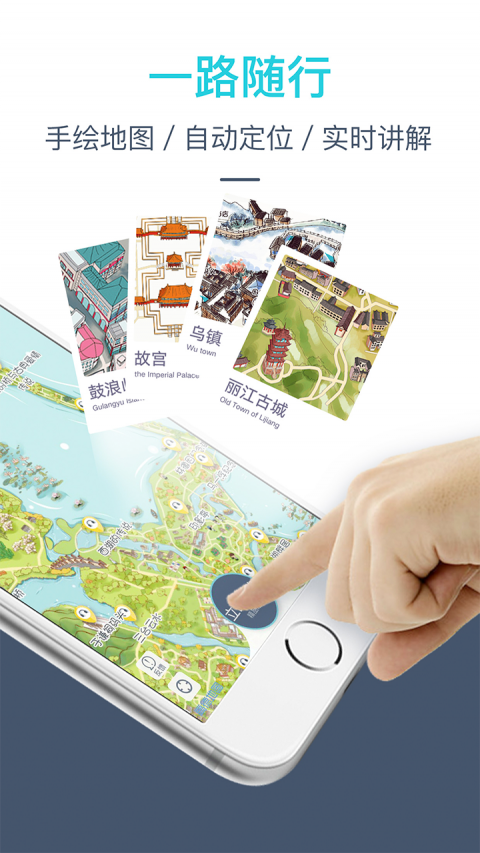 生动的景区手绘图,微景区准确导航。完美展现景区地形地势、建筑、道路等等细节内容,在你心里建设一张立体的景区一览图。实时导航与传统地图无缝对接,高精度GPS定位,GPS自动语音导览,让旅行更轻松。精品导览线路,让您不再为提前做攻略而烦恼。智慧虚拟导游让您自由自在领略现场导游的感觉,享受高品质讲解服务,物超所值。专业导游丰富的景区内容、历史、故事介绍,带你体验民俗风情,感受历史沧桑,让旅游更有深度。