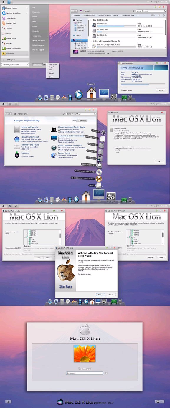 ubuntu skin pack是模仿ubuntu界面的主题包, ubuntu 11.04的发布,作者也把主题包给更新了下,界面模仿了 ubuntu 11.04 unity 桌面,主题包同样包含了主题,壁纸,鼠标指针,声音,图标,以及一些模拟ubuntu特效的软件。